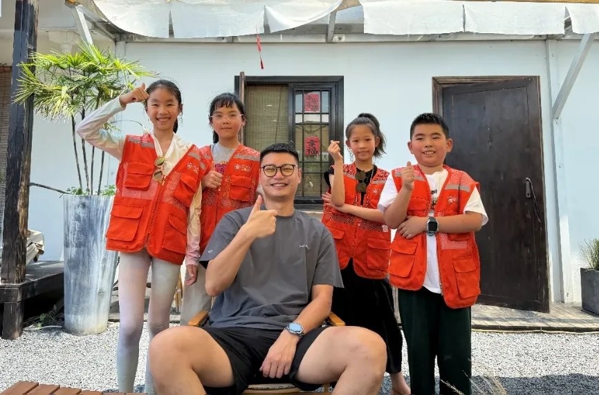 青年农创客与小朋友们合影