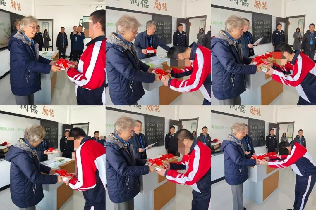 赠书仪式上,王桂馥代表市关工委为6名青少年赠送爱心书籍,同学们鞠躬致谢,全体学生还齐声宣读《成长承诺书》,誓言铿锵,展现出积极向上的精神风貌。