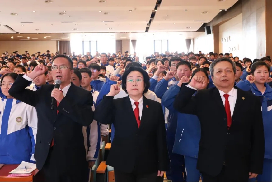 全体师生在报告团成员杨耀华老师的带领下庄严宣誓:“重视心理健康,珍爱生命,阳光生活。不当残忍的欺凌者,不当沉默的受害者,不做冷漠的旁观者,杜绝欺凌,做遵纪守法的好学生!”