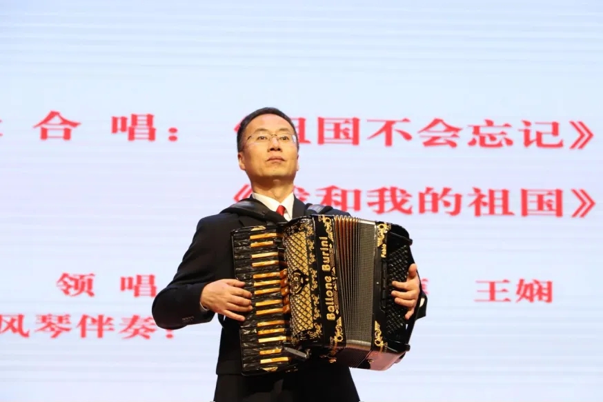 活动最后,报告团的老师们表演了合唱《祖国不会忘记》和精彩的手风琴演奏,报告会在《我和我的祖国》大合唱中落下了帷幕。