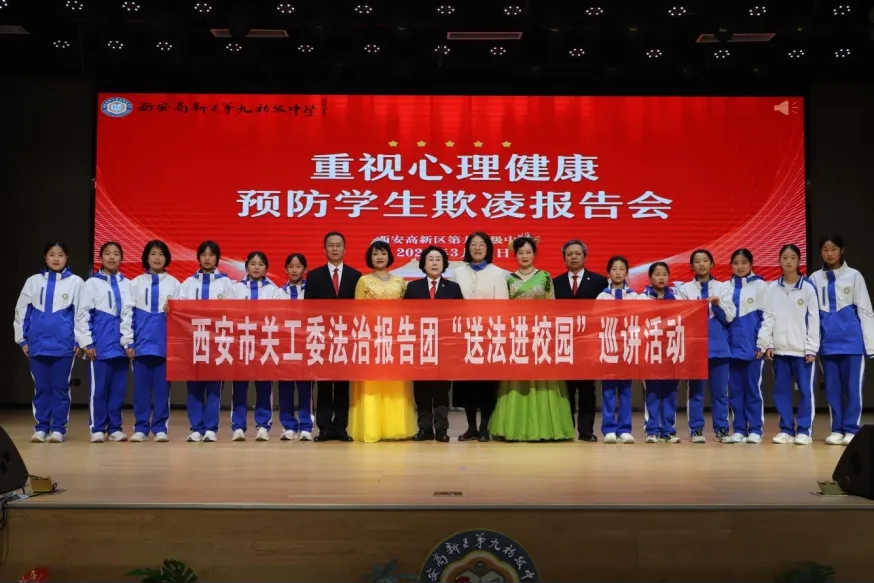 3月24日,陕西省西安市关工委法治报告团走进高新区第九初级中学和西咸新区沣东第八小学,为两所学校1300多名师生开展“重视心理健康 预防学生欺凌”主题报告会。