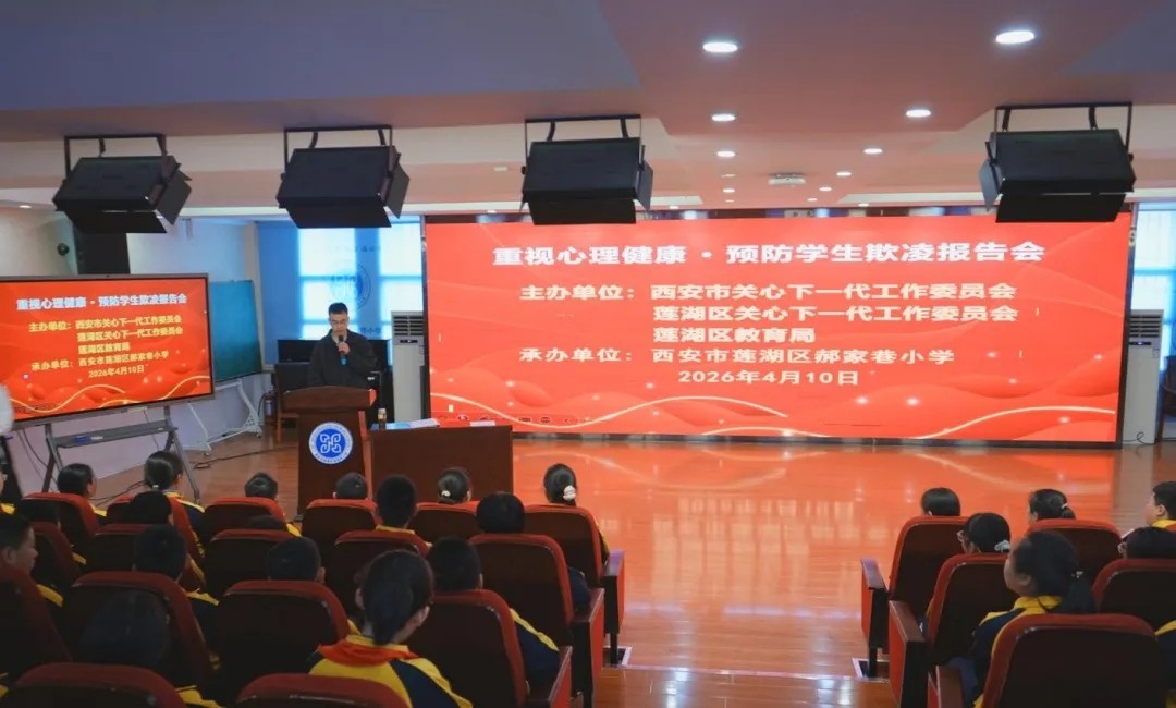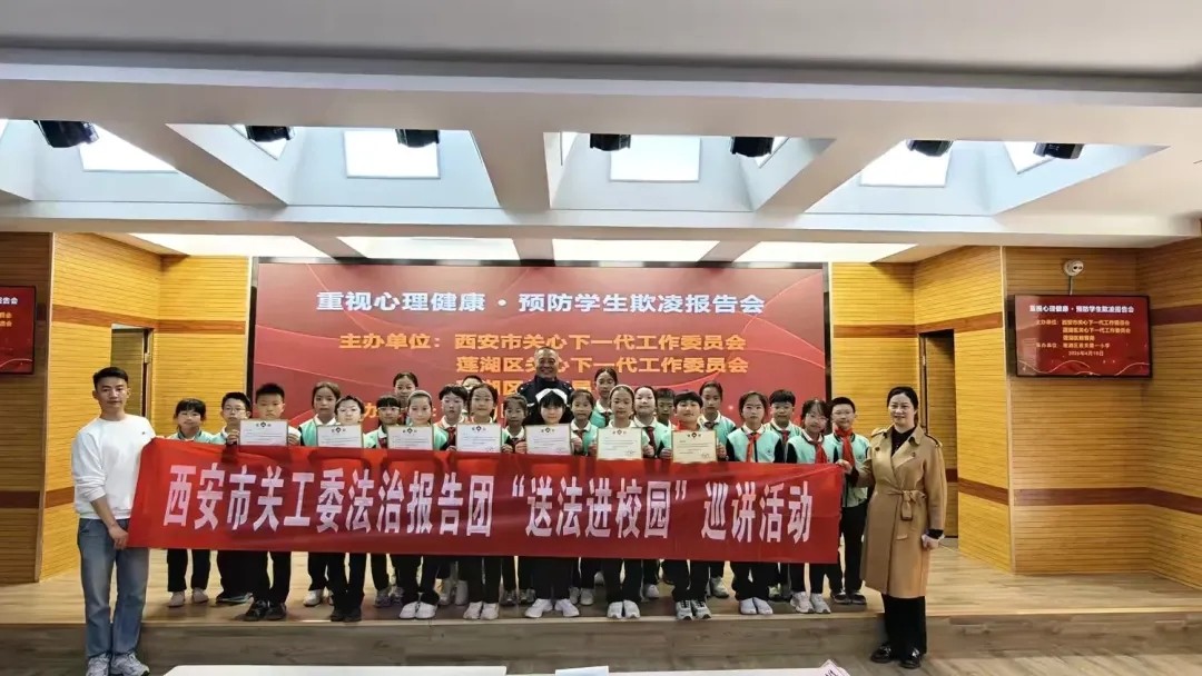 4月10日,陕西省西安市关工委法治报告团走进莲湖区郝家巷小学、西安市第十中学、第二十三中学、第三十一中学、八一街小学、西关第一小学6所学校,开展“重视心理健康 预防学生欺凌”主题报告会。本次活动由西安市关工委、莲湖区关工委、莲湖区教育局联合主办。莲湖区关工委领导与数千名师生参与活动。