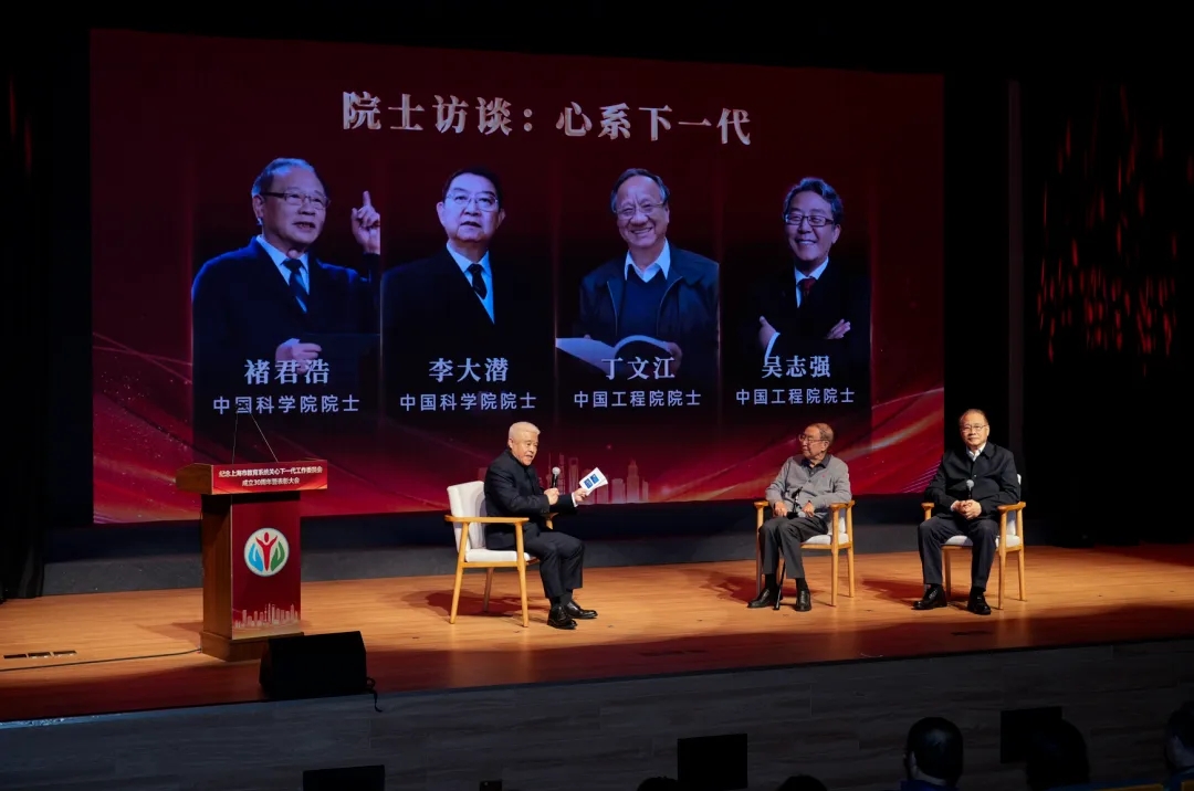 第二篇章“枫叶正红”集中展现“五老”风采与育人力量。少儿歌舞《阳光下的花朵》活泼灵动,用童真与活力彰显新一代青少年的蓬勃朝气。“五老故事”分享环节,闵行区教育系统关工委赵妙娟讲述《光荣在党五十年 一片丹心有新人》,同济大学关工委金正基分享《做青年的朋友》,上海市劳模协会工会管理学院劳模学员分会会长王连云阐释《劳模精神永放光芒》,上海交通大学博士生蒋函静以《读懂中国 饮水思源》传递青年一代对“五老”的感恩之心,生动诠释“老少牵手、共促成长”的育人成效。由市教育系统关工委专家指导中心执行主任张伯安主持的院士访谈《心系下一代》引发广泛共鸣,中国科学院院士李大潜、褚君浩与中国工程院院士丁文江、吴志强结合自身科研与育人经历,寄语青少年立大志、明大德、成大才,勇担时代重任。