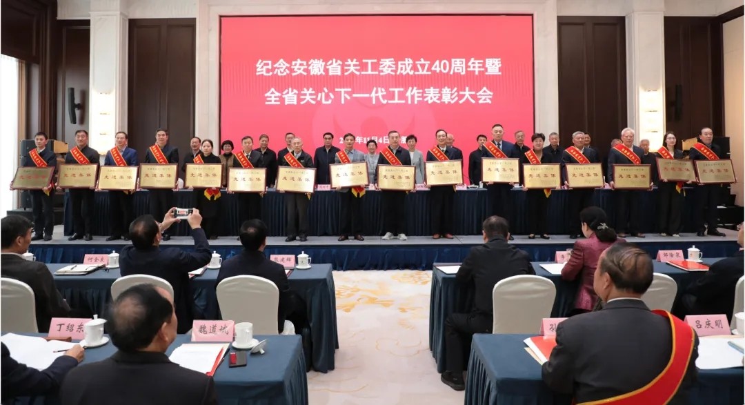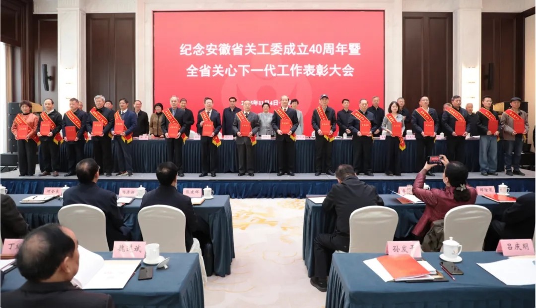 11月4日上午,安徽省关工委、省文明办、省委老干部局在合肥联合召开纪念安徽省关工委成立40周年暨全省关心下一代工作表彰大会。中国关工委主任顾秀莲出席。省委书记梁言顺、省长王清宪作出批示。省委常委、组织部长孙红梅、省政府副省长范付中出席。省关工委主任张俊作报告。