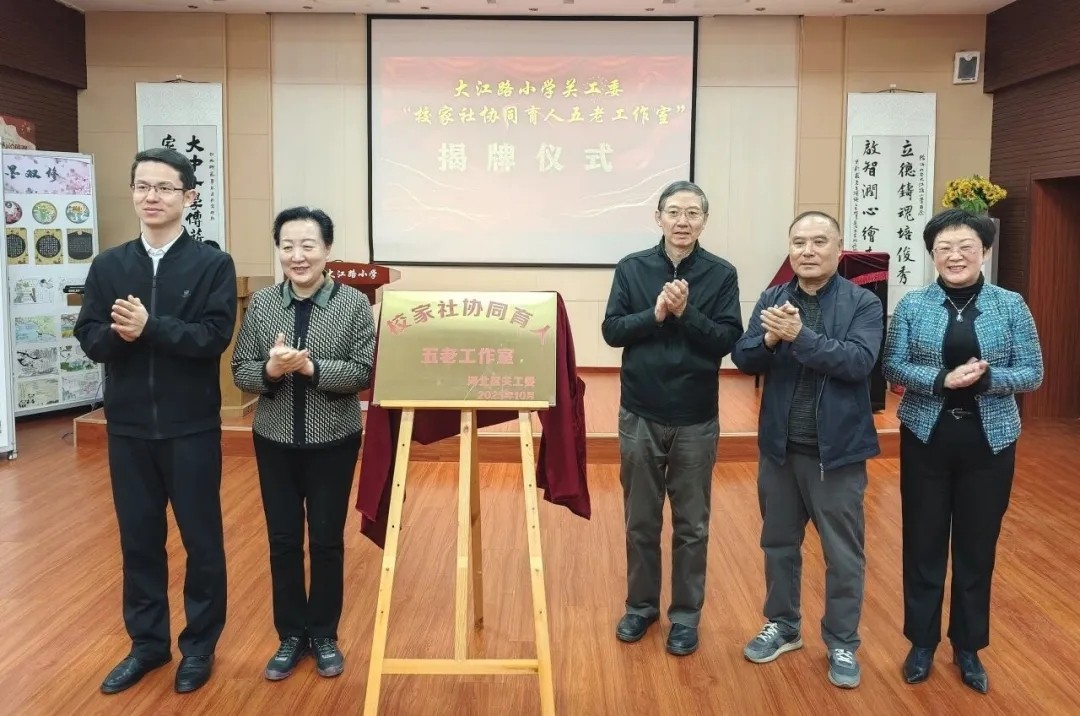 贾龙表示,“五老”是落实立德树人根本任务、培育时代新人的重要力量,“五老”的家国情怀和经验优势,是青少年成长的“精神沃土”,更是校家社协同育人体系中不可替代的“独特资源”,下一步将以工作室为纽带,构建“学校主导、家庭尽责、社会协同、五老赋能”的育人新格局,擦亮校家社协同育人的“河北品牌”。王洪华表示,河北区是天津市家庭教育工作示范区,大江路小学是全市唯一入选全国首批家庭教育实践试点单位的学校,此次工作站的成立搭起了“五老”牵手河北区未成年人的桥梁,为“引路人”常态化进校园、进家庭、进社区提供了固定阵地,下一步,市关工委将依托工作站,凝聚老干部、老战士、老专家、老教师、老模范力量,服务全体学生的全面发展。市关工委关爱部部长、老劳模工作委员会副主席葛英秋发来祝贺视频,表示发挥“五老”作用,共同做好关心下一代工作,是深入贯彻落实习近平总书记关于关心下一代工作重要指示批示精神的具体实践,希望在资源联动、力量联动、活动联动上将“五老”优势转化为育人实效。大江路小学关工委要以此为起点,在河北区关工委的领导下,在区教育局关工委的指导帮助下,瞄准工作方向,让工作室谱写出关心下一代的新篇章。