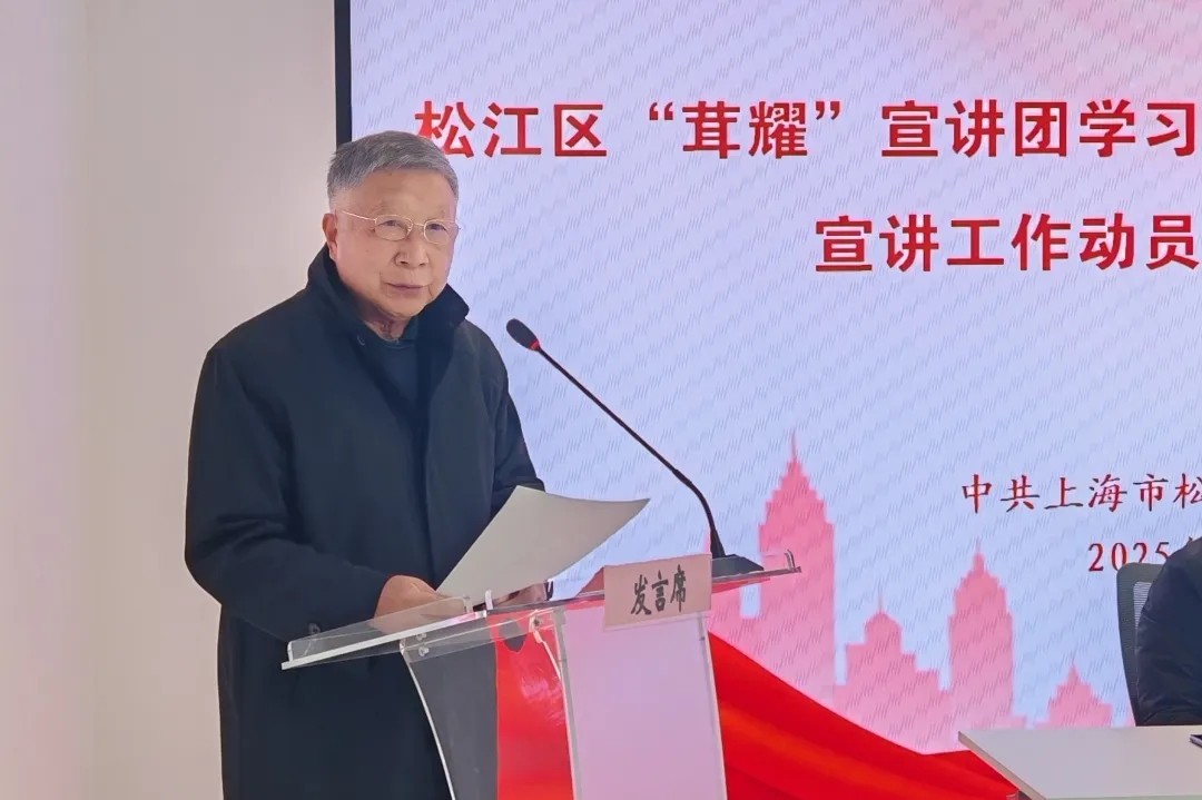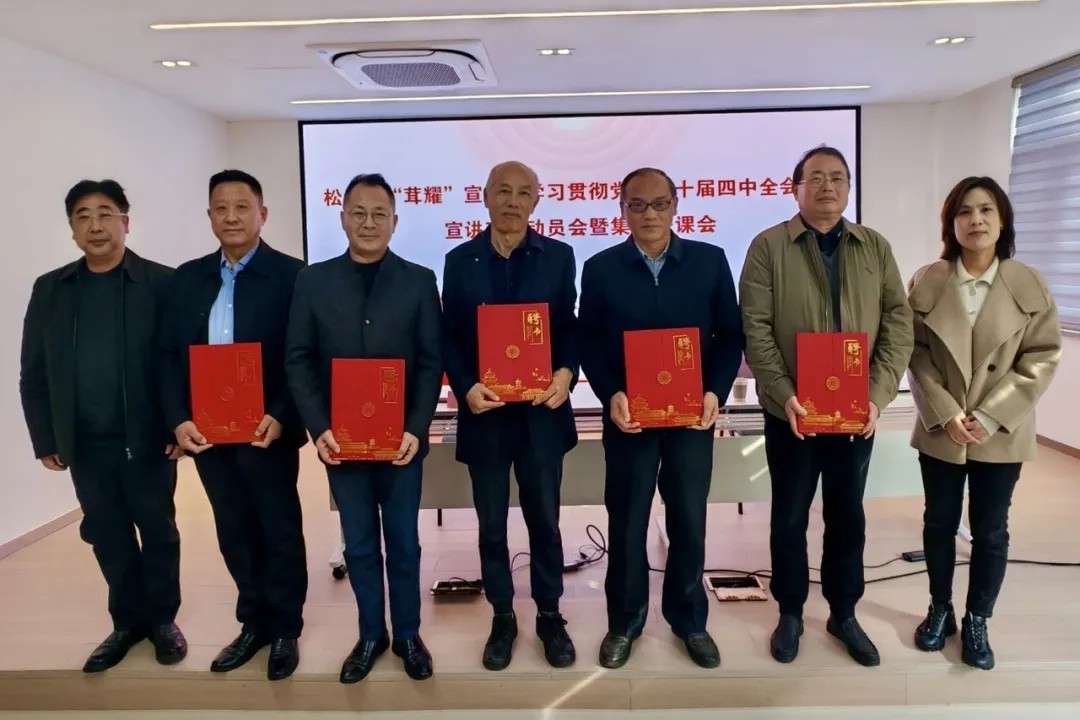 今年以来,松江区委老干部局采取“深入摸排+群众推荐+上门邀请”等形式,有针对性地动员5名刚退休的处级干部或专业领域老同志加入宣讲队伍。活动现场,向5名新加入“茸耀”宣讲团的老同志颁发荣誉聘书。“茸耀”宣讲团团长徐磐石和松江区司法局原副局长、二级调研员陈炳泉代表松江区老同志作表态发言。会议还邀请松江区委党校副教授徐文震围绕“党的二十届四中全会精神宣讲”作示范宣讲,从党的二十届四中全会核心要义,结合基层治理实际,从理论内涵、实践要求等方面进行深度解读。会上对2025年松江区“四个讲一带动”活动和宣讲团宣讲情况进行了总结回顾,并对市委、松江区委关于学习贯彻党的二十届四中全会精神的会议精神进行了传达学习。